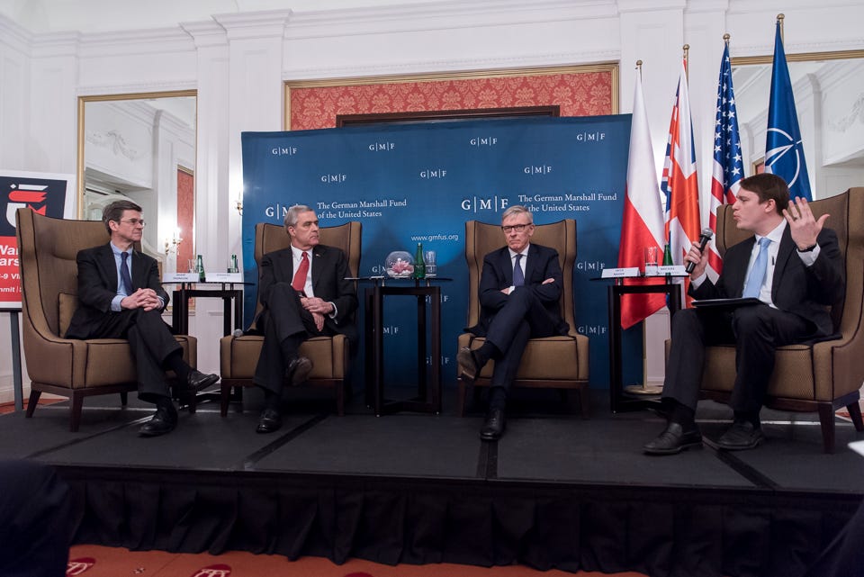Zaczęły się spotkania i debaty przed warszawskim szczytem NATO. W ostatnią środę, 24 lutego, sala w warszawskim Bristolu była pełna, zainteresowanie duże. German Marshall Fund of the Unitet States, zaprosiło do dyskusji ambasadora Jacka Najdera, stałego przedstawiciela Rzeczypospolitej Polskiej przy NATO, ambasadora Douglasa E. Lute, reprezentującego w NATO Stany Zjednoczone oraz ambasadora Adama Thomsona, stałego przedstawiciela Wielkiej Brytanii przy NATO. To pierwsza z całej serii spotkań jakie się szykują. Na większość warto chodzić, paneliści przedstawiają tutaj stanowiska swoich krajów, omawiają priorytety przygotowań do szczytu.