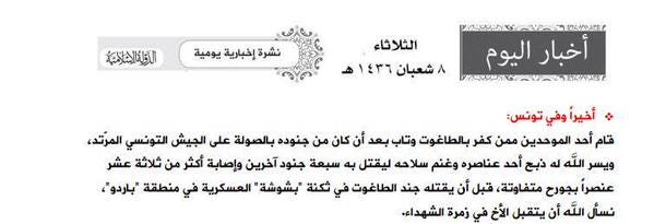 17 marca pojawił się film IS “Wiadomość do ludu Tunezji” na którym 3 Tunezyjczycy z IS :Abou Moassab, Abou Mohamed al-Tounsi i Abou Moqatel: